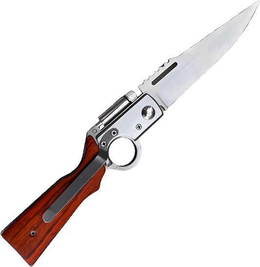 ⚡Last Day 60% OFF-🦋⚔️AK47 folding knife with one-piece steel handle and wooden handle, featuring LED light.-Kitchenware&Camping Gear