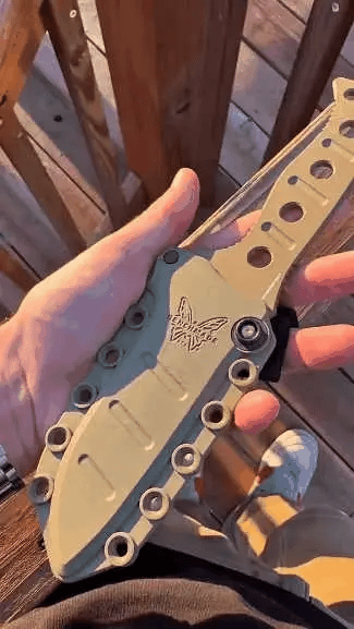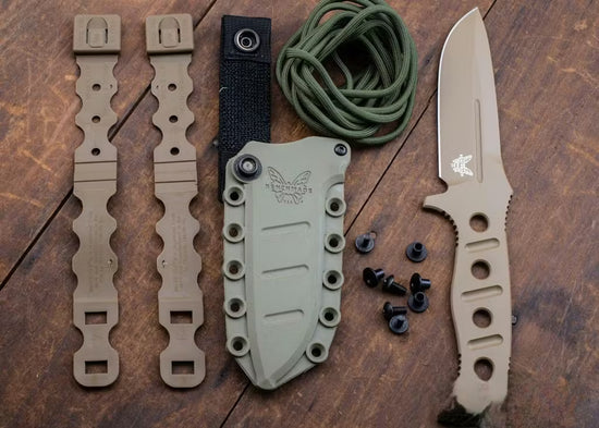 - Kydex sheath has attachment points for Molle and includes Malice clips
