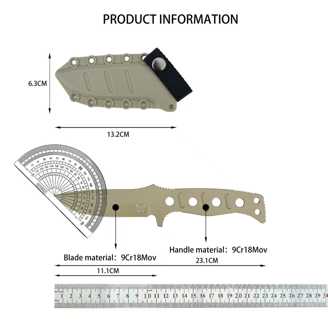 The blade is made of CPM CruWear monolithic steel, offering excellent hardness and toughness, and is coated with a Cerakote coating for enhanced protection. The handle features a handguard with multiple anti-slip grooves for a secure grip. A paracord is included for wrapping the handle, and the knife also comes with a MOLLE-compatible sheath and MALICE clip.
