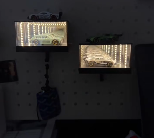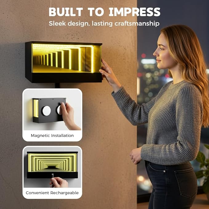 Infinity garage key holder features a tunnel effect light that creates a glowing illusion, immediately enhancing your entrance or corridor. Automotive themed design adds a distinctive vibe for car lovers, making your front door key rack both practical and decorative.