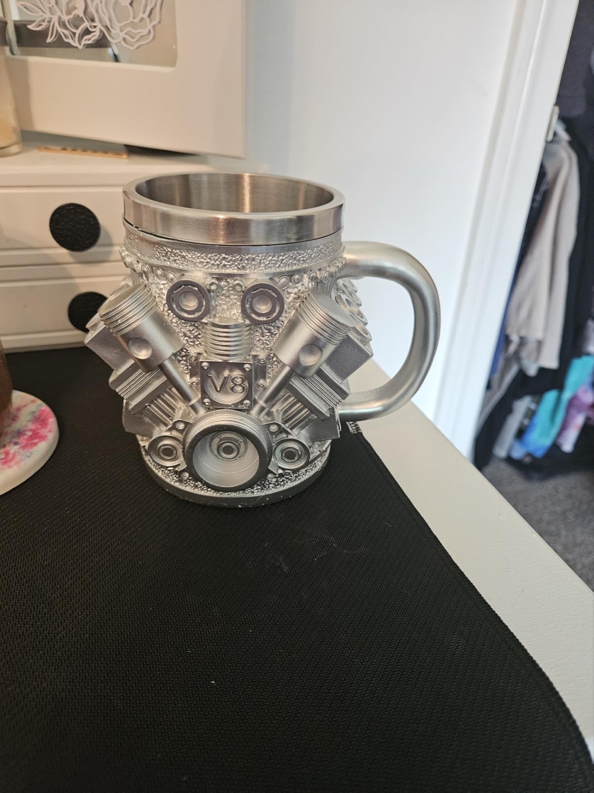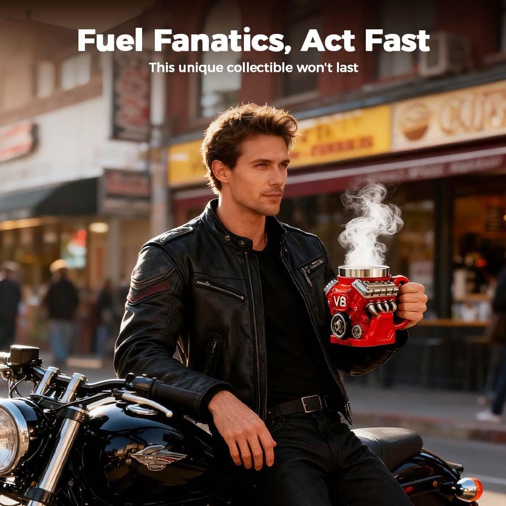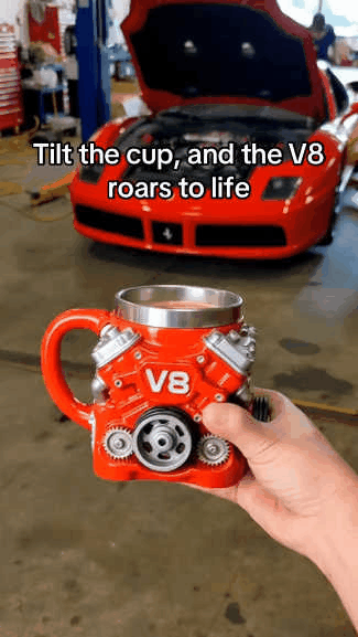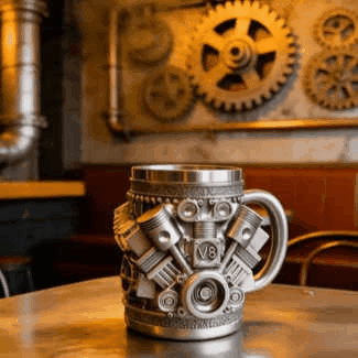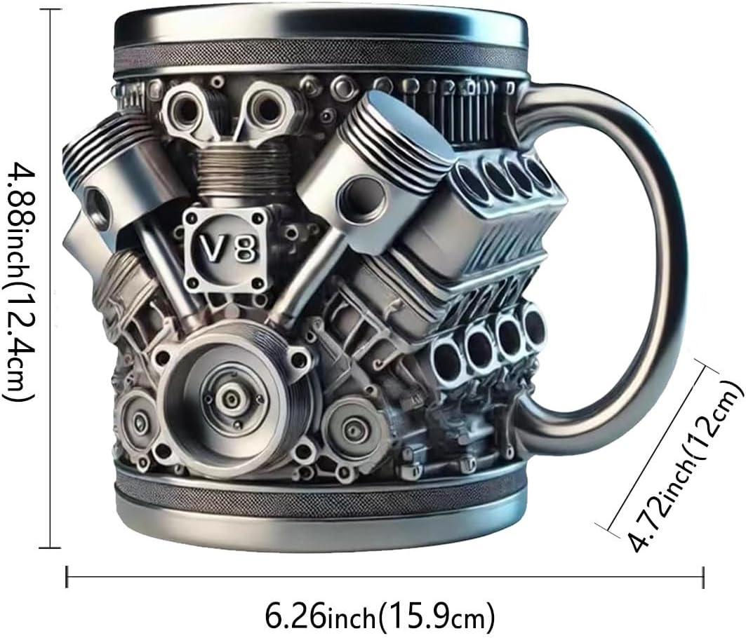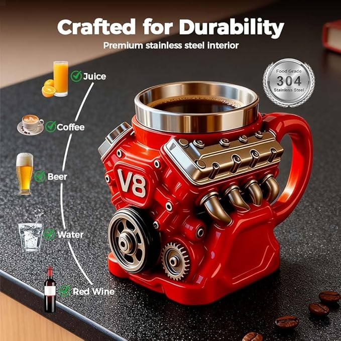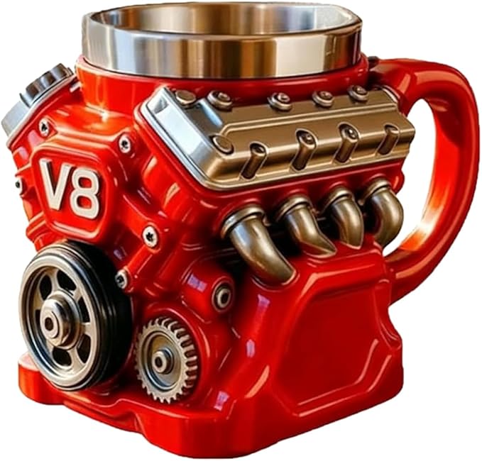 This engines stainless steel cup V8 makes an ideal gift for mechanics, gearheads, and automotive fans, adding a touch of horsepower to their daily coffee routine.